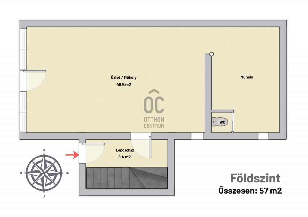 - Jelenleg üzlethelyiség, amelyben wc és kézmosó található. Eredetileg garázsként funkcionált, annak visszaalakítására van lehetőség.