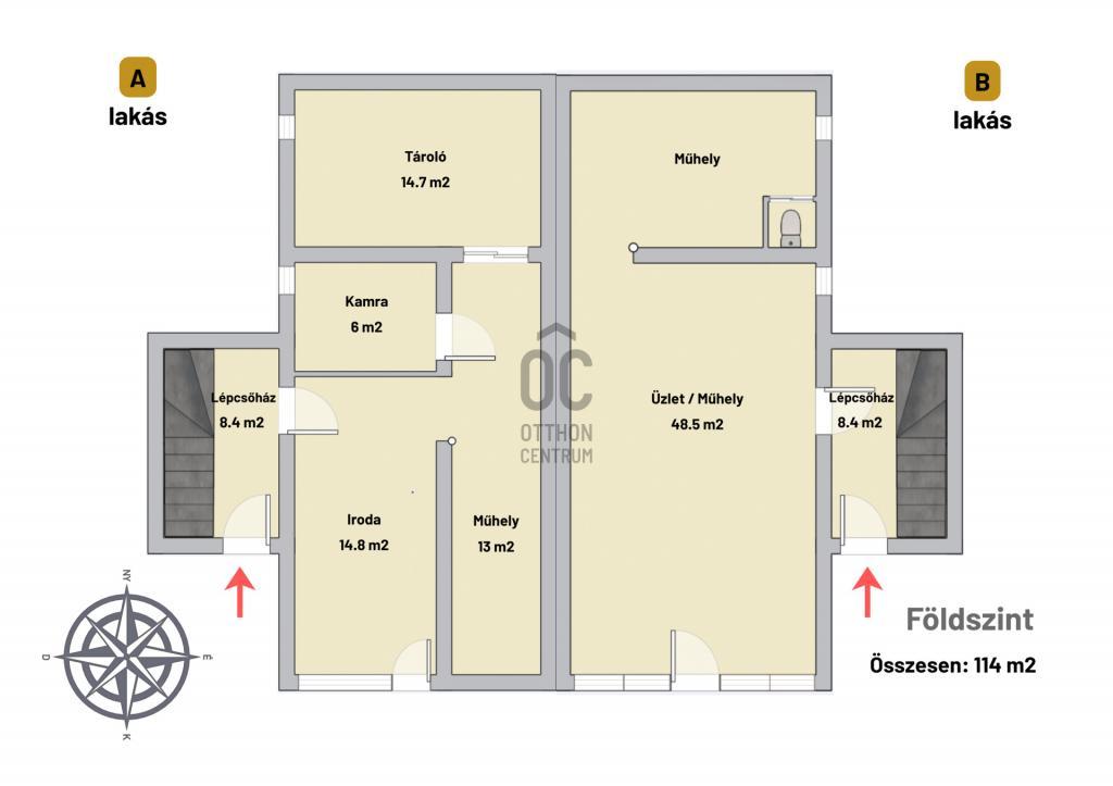- Jelenleg üzlethelyiség, amelyben wc és kézmosó található. Eredetileg garázsként funkcionált, annak visszaalakítására van lehetőség.