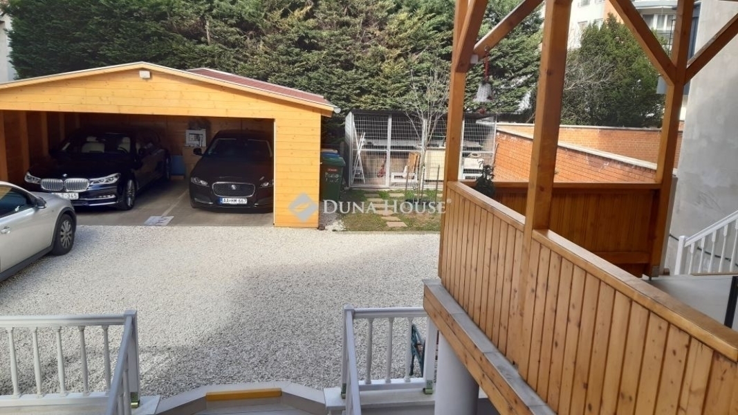 Az udvarra elektromos kapun keresztül lehet bejutni, ahol egy 2 autó számára kialakított garázs lett felépítve.