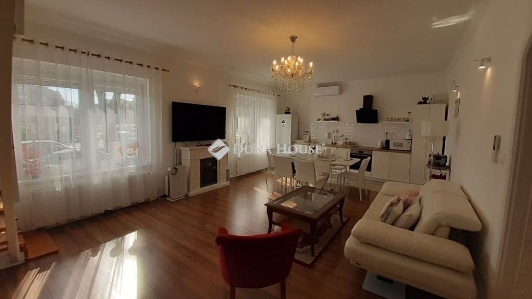 A földszinti lakás belső 2 szintes, nagy nappali + amerikai konyhával, 4 hálószobával, 2 fürdőszobával rendelkezik.