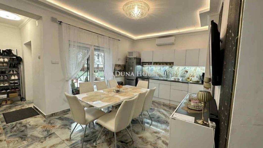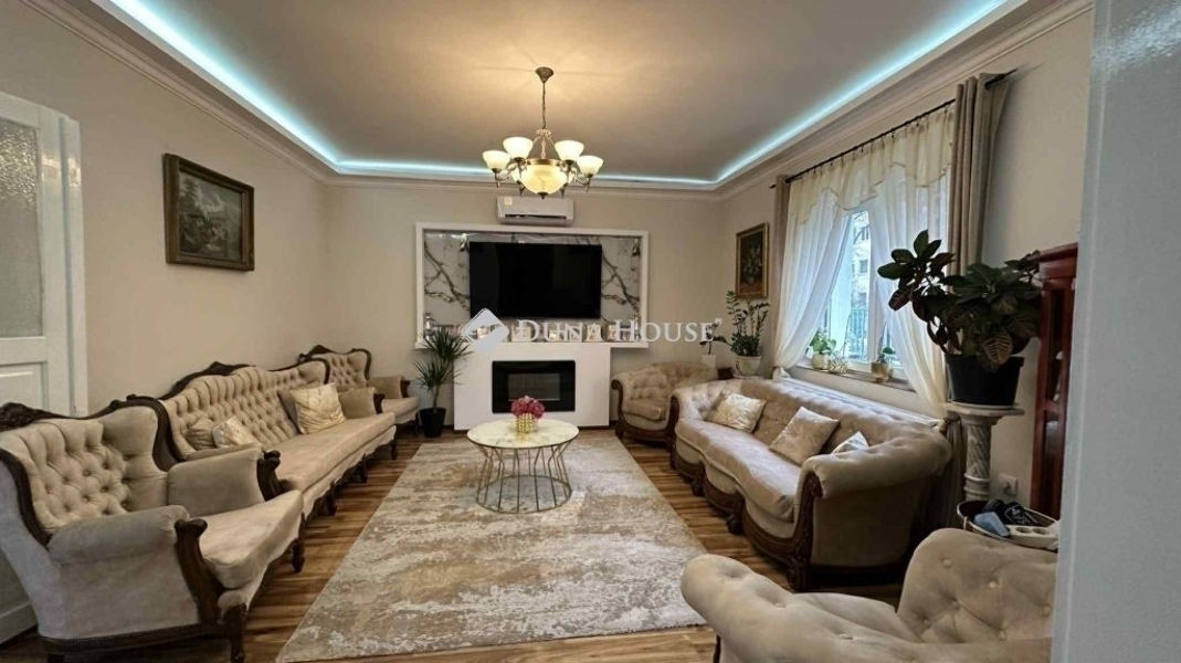 Zugló csendes, nyugodt részén, kertvárosias környezetben eladó egy 90 nm-es, frissen és teljes körűen felújított családi ház, 321 nm-es saját kerttel.Az ingatlan egy rendezett, barátságos utcában található, ahol a nyugalom és a jó lakóközösség garantált, mégis könnyen elérhető a városi infrastruktúra. A ház tehermentes, akàr azonnal költözhető állapotban várja új tulajdonosát.A lakótér praktikus elrendezésű: a 12 nm-es fedett teraszról jutunk be az előtérbe, innen nyílik a külön WC, egy kisebb szoba, valamint a modern, gépesített konyhabútorral felszerelt étkező. A napfényes, délkeleti tájolású nappali igazi központja a háznak, ahol kandalló, elegáns márvány TV-fal és falba épített LED világítás teremti meg az otthonos hangulatot. A hálószobából akadálymentesen egy zuhanyzós WC is kialakításra került.A ház tavaly teljes körű felújításon esett át, amely minden műszaki részletre kiterjedt: cserélve lettek a víz-, villany-, megújultak a burkolatok, a nyílászárók, valamint a tetőszerkezet is felújításra került. A korszerű fűtési rendszer új radiátorokkal, 2 darab klímaberendezéssel, valamint a nappaliban található kandallóval biztosítja a komfortos hőérzetet egész évben.További lehetőség, hogy a tetőtér beépíthető, belmagassága körülbelül 3 méter, így a ház tovább bővíthető igény szerint.A kertben található egy 14 nm-es melléképület, amely jelenleg tárolóként funkcionál, de többféle célra is hasznosítható, rajta van a rajzon.Az udvarra autóval be lehet állni, az utcán pedig ingyenes parkolás biztosított.Ez az ingatlan ideális választás családoknak, pároknak vagy mindazoknak, akik egy felújított, azonnal költözhető, kertkapcsolatos otthont keresnek Zugló egyik nyugodt részén. Hibás hirdetés bejelentése