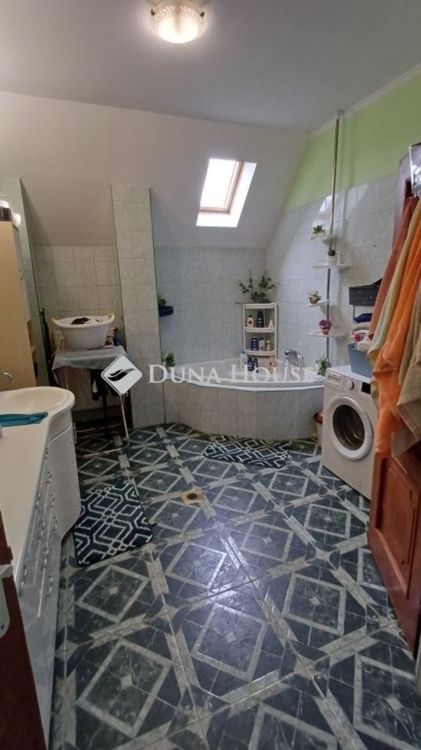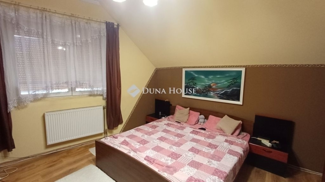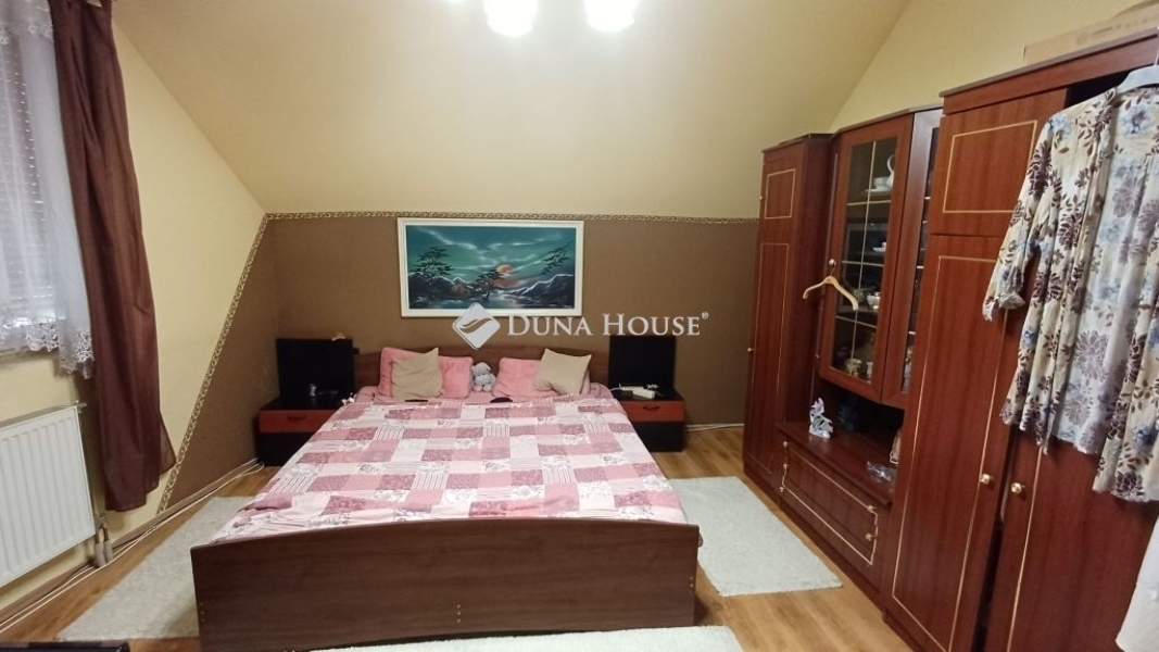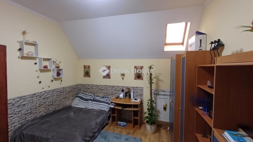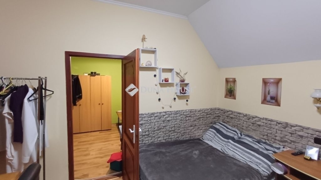 A felső szint 100 nm + 14 nm erkély teljesen külön bejárattal, önálló lakásnak kialakított nappali, 3 hálószoba, fürdő, WC, étkező és konyha. Található itt még egy 25 nm-es, jelenleg tárolónak használt szoba, valamint a 14 nm-es lépcsőház is beépíthető.