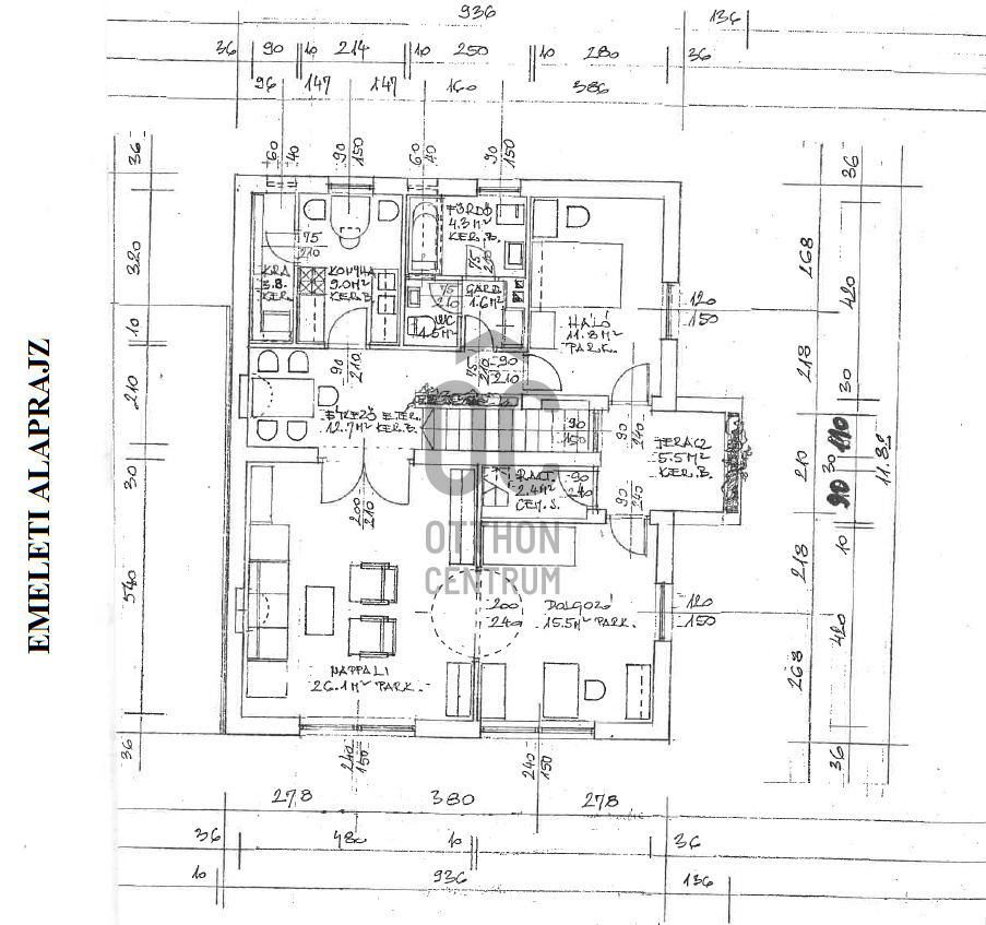 Az ingatlanhoz 28 m²-es garázs és több beállóhely tartozik.