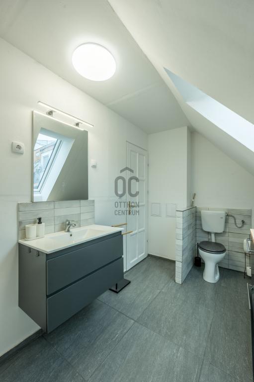 A tetőtér is közel 60m2, ahol 3 szoba és egy fürdőszoba került kialakításra. 2 szobából léphetünk ki az erkélyre.