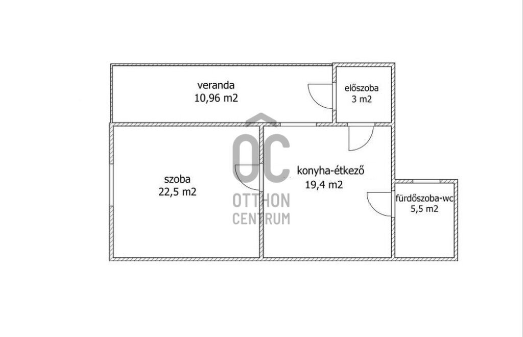 Az ingatlan jelenlegi kialakítása: egy szoba, konyha étkező, és egy fürdő WC-vel.