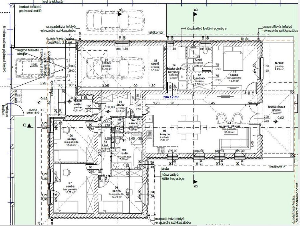 A nappaliból és a szülői hálóból közvetlen kijárat nyílik a 23 m?-es, részben fedett, nyugati fekvésű teraszra, amely ideális helyszín családi pihenéshez vagy baráti grillezésekhez.