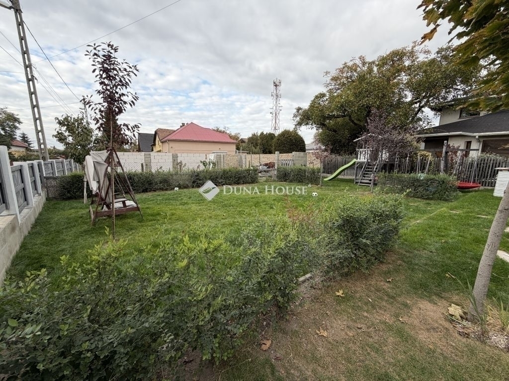 Kert: 750 m²-es saroktelek, automata öntözés (saját kútról), medence és garázs építés elkezdve, 30 m² pince, padlás, tágas terasz.