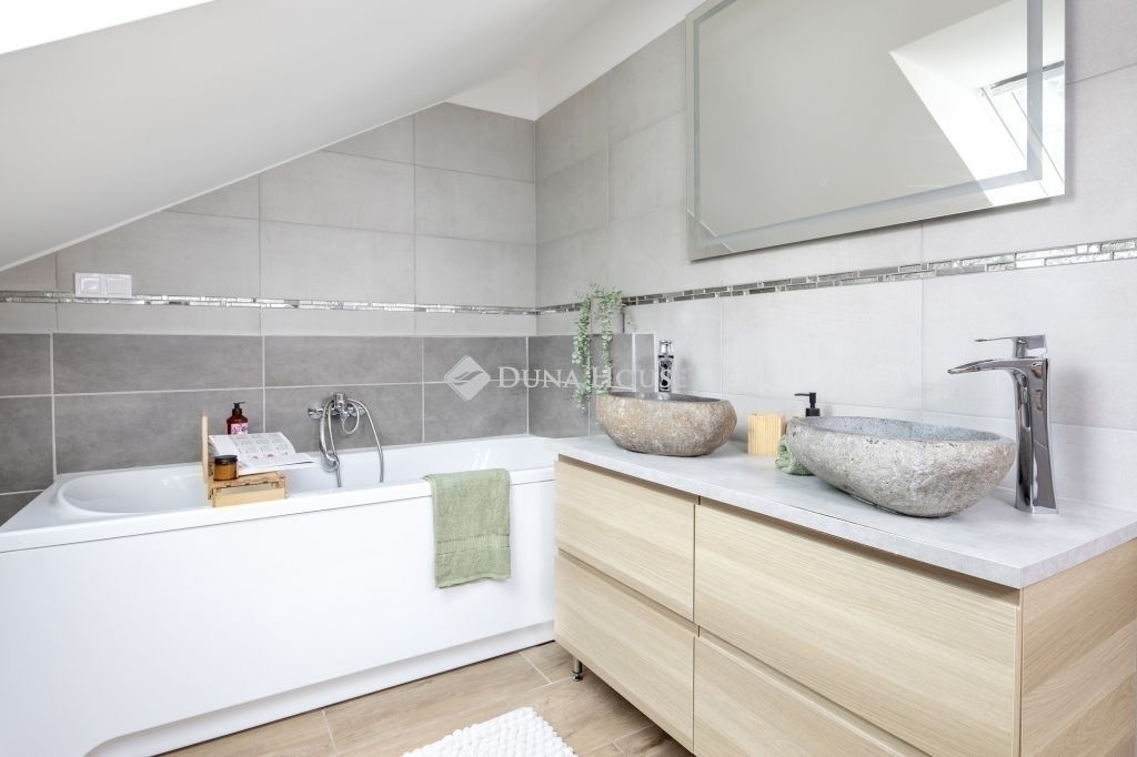 Otthont találni sosem volt egyszerű feladat. Ez az ingatlan igazi otthonérzést közvetít mind elhelyezkedése, mind felépítése, mind hangulata révén. Mátyásföld kertvárosi részén ad kellemes, hangulatos kerttel, gyümölcsfákkal, életteret, biztosítva a nagyvárosban a nyugodt kertvárosi nyugalmat minőségi lakótérrel egybekötve. Egy nagycsaládra tervezett ingatlan, 4 hálószobával, nappalival, dupla komforttal. Az ingatlan utca frontján két mozgókapu, valamint egy személyi kiskapu biztosítja a bejutást. A földszinti rész jobboldalán található az ingatlannal egybeépített fűtött garázs.Az ingatlan rendelkezik nagy pincerésszel is, amely nem csak második gépkocsi beállást biztosít, hanem igény esetén műhelyként is hasznosítható, vagy akár lakóhelyiség is kialakítható. Tartalmazza az ingatlan teljes gépészeti részét is, irányítva a fűtés, meleg víz használati területeket.A magas földszint tartalmazza a szélfogó bejáratot, mely után következik egy folyosó, ahonnan balra máris megközelíthető az első földszinti szoba.Jobbra megtaláljuk a mellékhelyiséget és a földszinti fürdőszobát is külön bejárattal mindkettőt.Ahogy tovább megyünk elérünk a tágas étkező-konyha térre amiből három irányban is mozoghatunk: balra a második szoba, nappaliként funkcionál, telve napfénnyel, melyből fotelben ülve is csodálatos a naplemente. A hatalmas terasz, mely kinyitható napfényvédővel is rendelkezik, mind a nappaliból mind az étkezőből megközelíthető. Az étkező jobb sarkánál lehet egy lépcsőn megközelíteni az emeleti lakóteret.Az emeletre felérkezve ismét egy közlekedő folyosót találunk. Baloldalt ismét a fürdő-mellékhelyiség külön-külön bejárattal található. Előre és jobbra elérhetjük a három világos emeleti lakószobát. Ebből kettőnél egy külső terasz fokozza a kényelem és friss levegőn való pihenés élvezetét.Az ingatlant teljesen körbe öleli a kert gondozott pázsitja, valamint a különböző termő gyümölcsfák.A lehetőségek tárháza széleskörűen biztosít valódi otthont mind nagy családosok, mind összeköltözők számára. Egyaránt alkalmas céges központ létrehozására, vagy akár magánrendelő kialakítására is.A környéken kisebb sétával az utca végén elérhető ALDI, kicsit távolabb LIDL bevásárló üzletek találhatók. De ugyanígy uszoda, sport központ is könnyen elérhető közelségben van.Szintén az utca végén buszjárat közvetlen HÉV járathoz visz néhány megállóval. de rövid úton megközelíthető Rákoscsaba irányába vivő járat, valamint az Örs vezér tér irányába is.Itt a vedd és vidd kategória mindössze úgy módosul, hogy vedd és költözz be!Ne sokáig várj, mert ez nem a késlekedők lehetősége.
