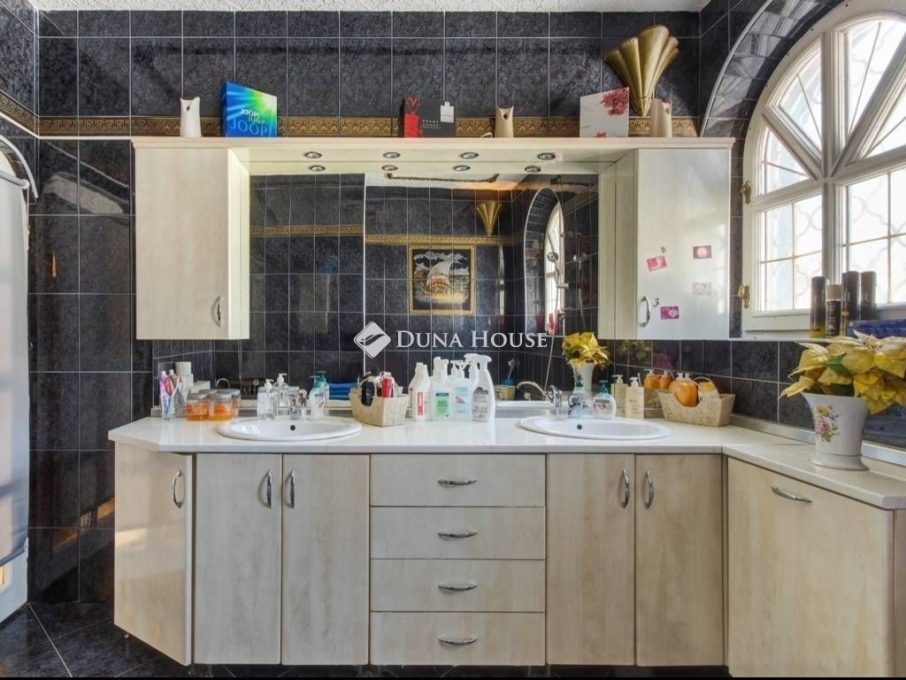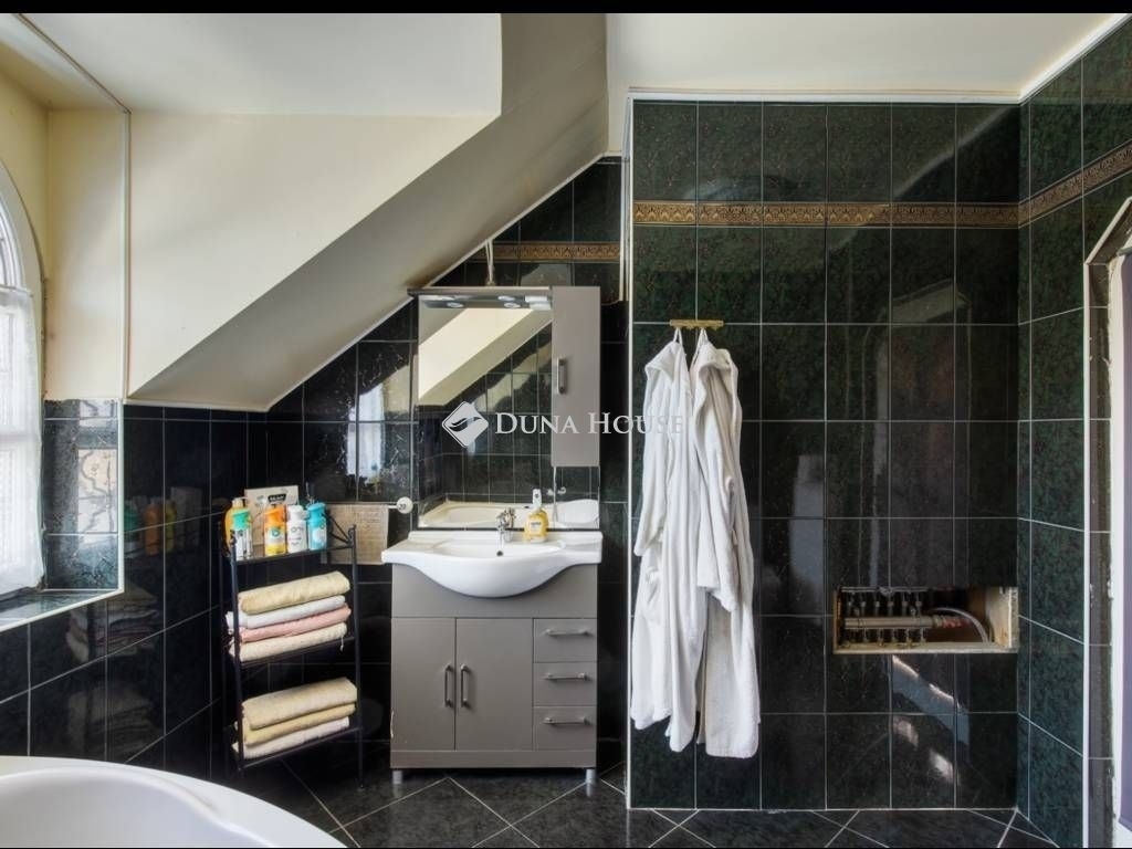 Egyedi adottságokkal és központi elhelyezkedéssel rendelkező, XVI. kerületi, kiváló állapotú családi ház tágas terekkel, 4 hálószobával és 3 fürdőszobával keresi új tulajdonosát. A 738 nm-es telken egy vendégház és egy medence is található, melyek az ár részét képezik.Az ingatlant 2000-be építették és tartozik hozzá egy hasonló kivitelezésű önálló 55 nm-s épület a telek hátsó részén, így több generáció külön élése is megoldható. A földszint központjában egy 60 nm-s nappali található egy hatalmas kandallóval. Fűtése cirkóról történik padlófűtéssel és lapradiátorokkal. Nyáron a kellemes hőmérsékletről klíma gondoskodik. Autóbeállásra a ház mellett van lehetőség, telken belül 6 autó részére. Az ingatlan teljes biztonságáról kamera és riasztórendszer gondoskodik KÖRNYÉK : egy karnyújtásnyira található egy hangulatos, teraszos étterem, valamint cukrászda, fagyizó, gyógyszertár, orvosi rendelő, bolt és még iskola is megtalálható a közvetlen közelben, ezért is tökéletes választás lehet ez a kiváló ingatlan családok számára. Ez a fantasztikus ház frekventált helyen található, de mégis csendes környezetben. Számos buszjárattal el tudunk jutni az Örs vezér teréhez vagy akár az Auchan Liget bevásárló áruházba.