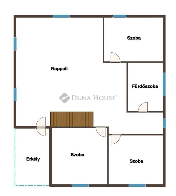 A nappali kényelmes méretű, a szobák külön nyílóak, így ideálisak családok vagy akár többgenerációs együttélés számára is.