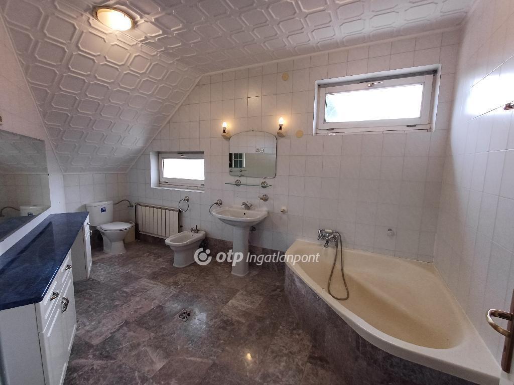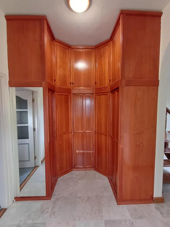 Az 1992-ben épült körbejárható ingatlan egy 532 négyzetméteres telken helyezkedik el, összesen 235 négyzetméteres lakótérrel. Elosztása rendkívül praktikus, a földszint a mindennapok kiszolgálását, a vendégek fogadását célozza meg. Itt található a nappali, a konyha, az étkező, egy zuhanyzós fürdőszoba, valamint egy vendég mosdó. A tetőtér egy privátabb teret biztosít, itt 4 darab hálószoba, egy gardrób és egy nagy fürdőkádas fürdőszoba helyezkedik el. A szuterén szint kialakításában rengeteg lehetőség rejlik. Itt 4 külön helyiség található, jelenleg egy mosókonyha, egy tároló, egy edzőterem és egy nagyobb terület található. Kialakítható itt akár egy teljesen különálló lakrész, egy műhely, egy szépségszalon, vagy akár egy saját szórakoztató központ is. Előnye, hogy itt is minden helyiség ablakos, a víz be van vezetve, fűtés van. A ház jó állapotú, legutóbb festés, és a kazán cseréje történt meg. A háznak van egy fedett terasza is. Az udvaron található egy garázs, valamint két kocsi számára fedett beálló. Van fúrt kút, kukatároló helyiség, dísznövények, a közlekedő utak térkövezettek. A ház külső homlokzata is jó állapotban van. Az épület kaputelefonnal és riasztóval el van látva. A környék kertvárosias, csendes.