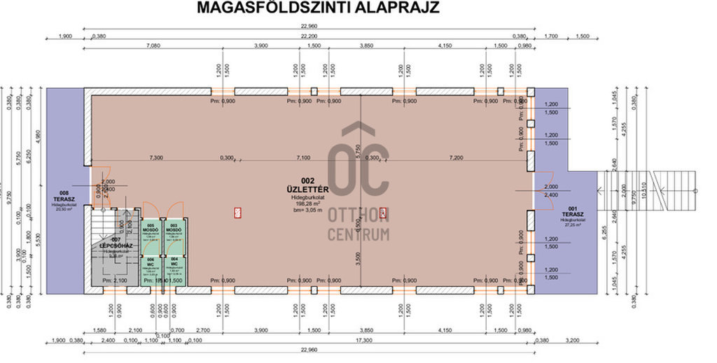 Lakótér: 434 m² (magasföldszint + emelet)