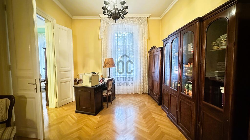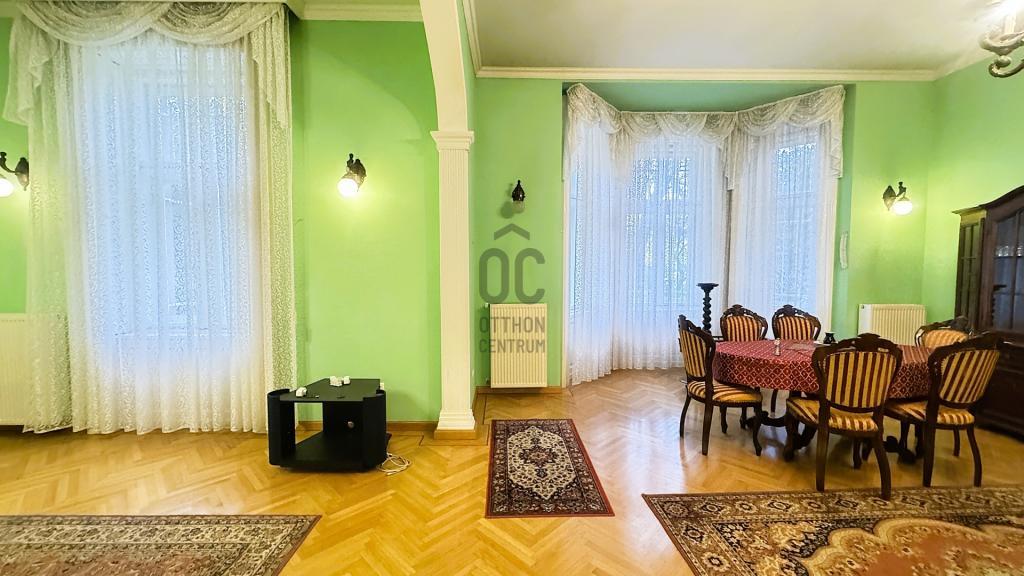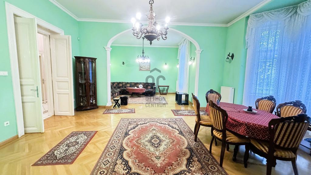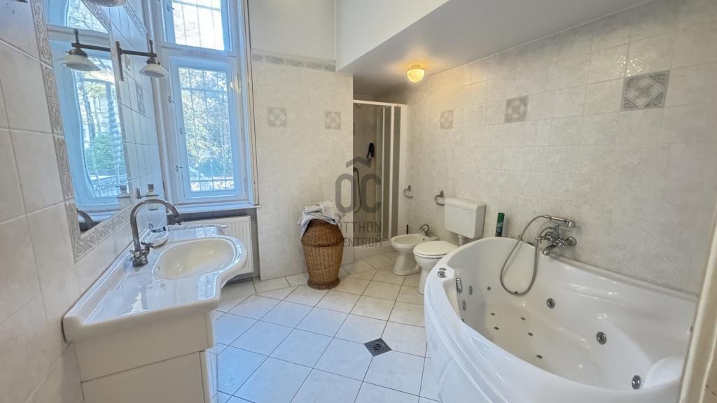 A nagypolgári stílusú ház szobáinak belmagassága több, mint 3 méter. Több bejáratos ingatlan. Fényes tágas nappali, hatalmas terek, múlt idéző polgári hangulat. 6 szoba gondoskodik a privát lehetőségekről. Az épület félszuterén szintjén lett kialakítva a gázkazán, mosókonyha, kondi terem és borospince. Az épület folyamatosan karbantartott, szépen felújított eredeti fa nyílászárok, több pontos biztonsági ajtóval rendelkezik. Biztonságról a beépített riasztó rendszer gondoskodik. Automata kapun keresztül megközelíthető a különálló garázs melyben 1 db gépkocsi tud parkolni. További 5-6 autó felszíni beállón parkolása szintén megoldott. Az épület folyamatos felújításon esett át, ami érintette a gépészetet az összes burkolatot, a nyílászárókat, a díszítéséket és a tetőszerkezetet. A parkosított, gondozott kertben örökzöldek, virágok, teszi élvezetessé a mindennapokat. Kellemes kiülők, padok segítik a pihenést és a természet közelségét.