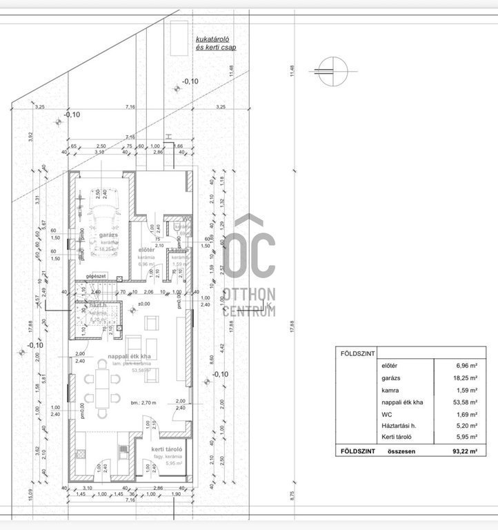 - a földszinten hatalmas 54 m2-es amerikai konyhás nappali, egy mosdó és egy háztartási helyiség, valamint egy garázs és egy kerti tároló kapott helyett