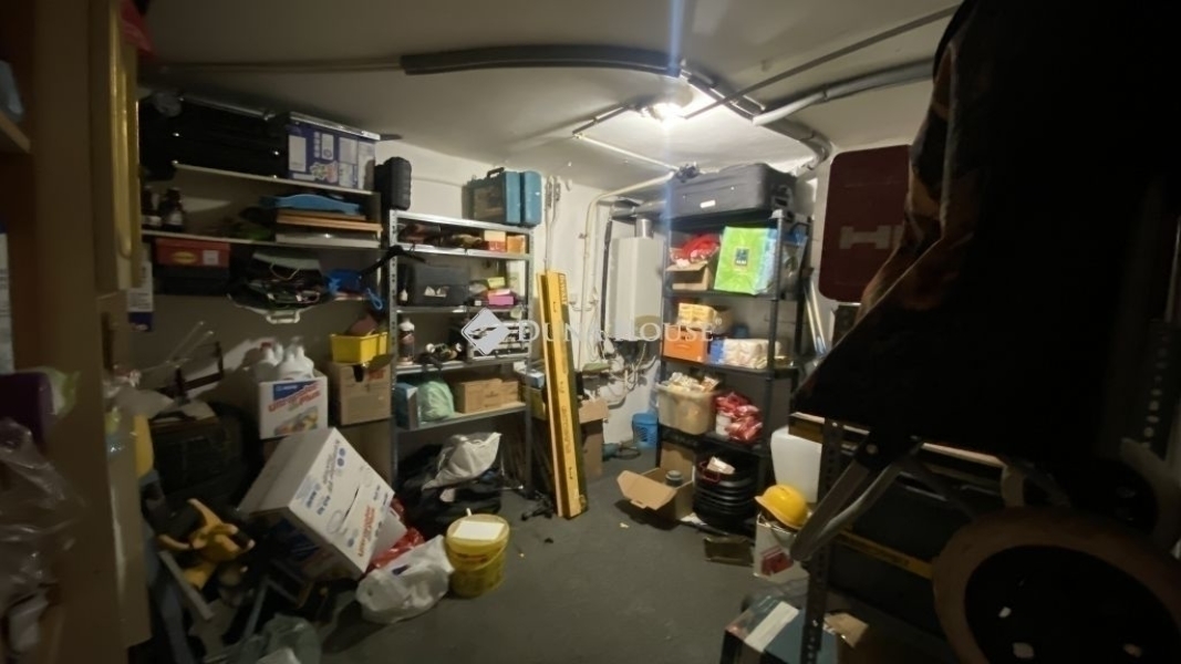 Kert: parkosított kert tárolókkal, kutya kennellel, fedett kocsibeállóval, Pince + padlás: tárolási lehetőségek
