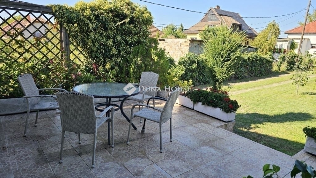 A kert rendezett, díszfákkal és örökzöldekkel beültetett, melynek öntözése fúrt kútból megoldott, így a locsolás gazdaságosan, alacsony költséggel biztosítható. A házhoz teraszos kapcsolódás is tartozik, amely természetes átmenetet képez a belső tér és a kert között.