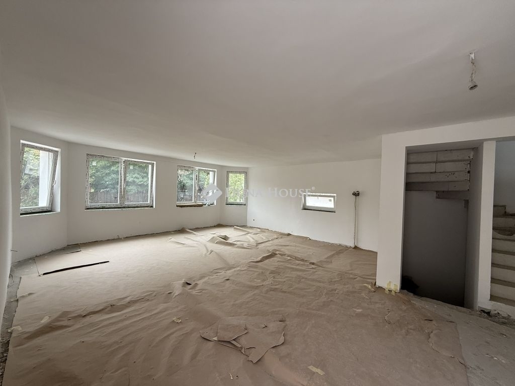 Jelenlegi állapotban a belső terek még a vevő igényei szerint alakíthatók. Szintenként 55 nm áll rendelkezésre a félszuteréntől az emeletig, így akár nagy méretű szobákkal is kialakítható lakásonként a nappali + 5 hálószoba. A tervek szerint a földszinten 45 nm-es amerikai konyhás nappali és egy vendégmosdó, az emeleten 3 db hálószoba és egy tágas fürdőszoba, míg a félszuterén szinten 2 db hálószoba és egy tágas fürdőszoba alakítana ki az eladó.