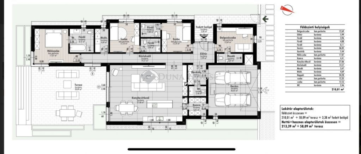 Laminált- és Gres burkolatokkal készülnek a belső terek. A ház teljes belső tere egyedi kialakítást kap.