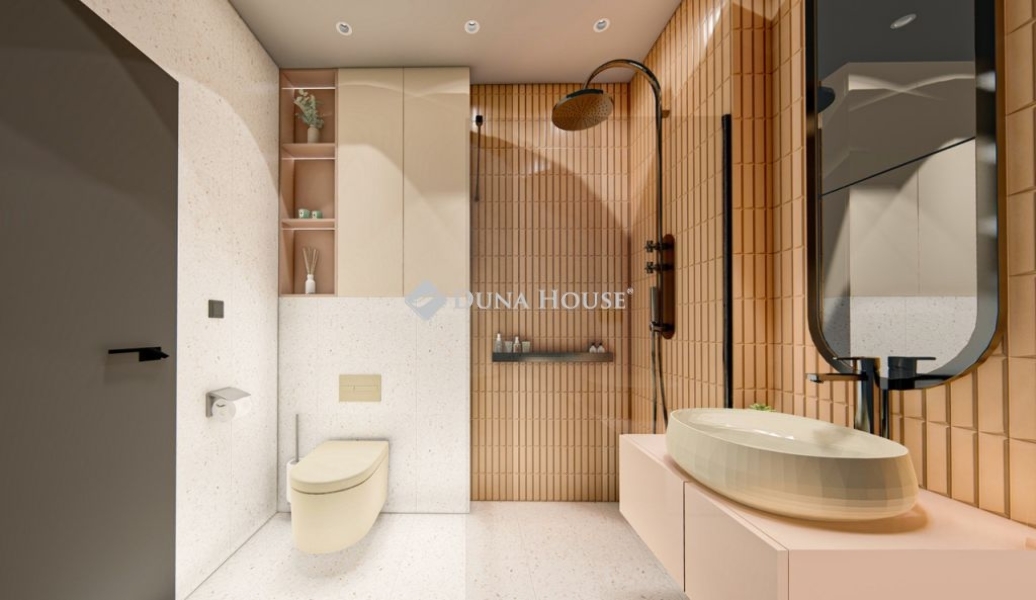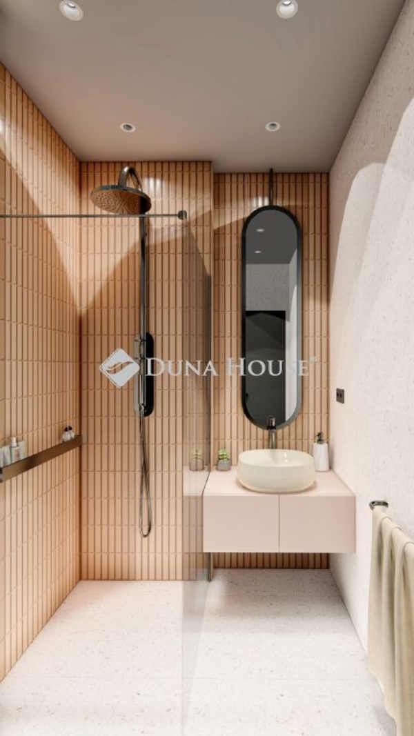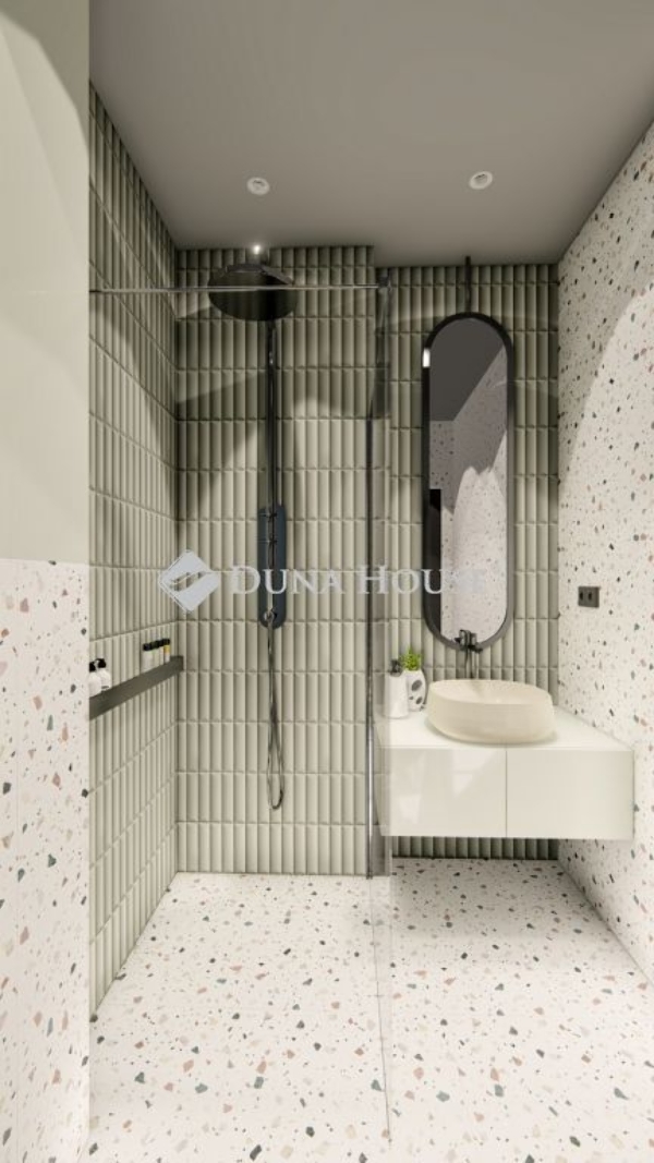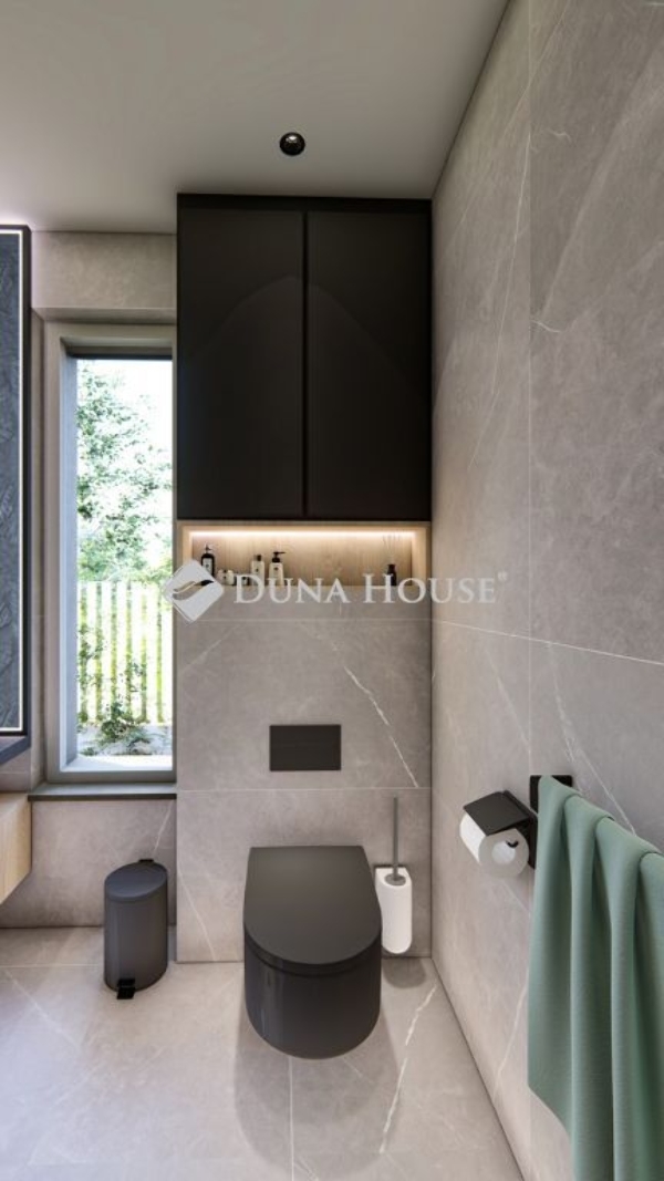 Épített zuhanykabin, ajtóval és rejtett zuhanylefolyókkal lesz kialakítva. A bútorokra felszerelhető porcelán szaniterek beépítésre kerülnek. A ház intelligens rendszerekkel felszerelt, ennek köszönhetően az alábbiak, akár telefonról is vezérelhetőek