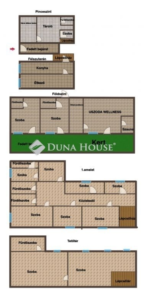 - 4 szoba ( 14,78 m2 , 9,54 m2, 8,95 m2, 10,73 m2 )