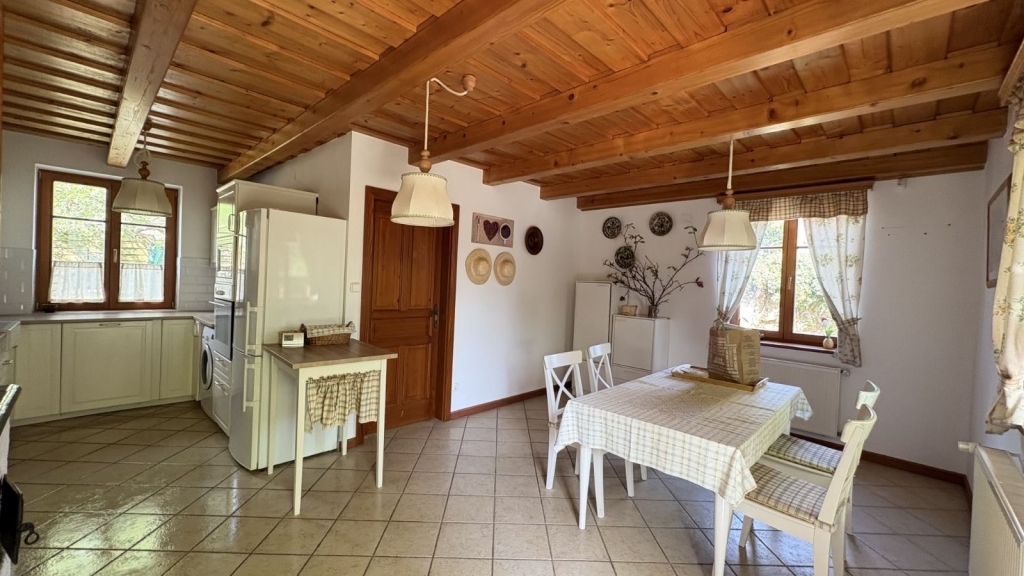Akár több generáció összeköltözésére is alkalmas lehet, de befektetésnek is kiváló a két külön kialakított lakrész miatt. Elhelyezkedését nézve pedig vállalkozásnak is tökéletes helyszínt nyújthat. Az ingatlan 824 m2-en helyezkedik el, ennek több mint a fele a szabad zöld terület. A 215 m2 alapterületű, kétszintes családi ház szintenként ketté van választva, két külön bejáratú, 107 m2 lakásra, de igény esetén egybe is nyitható. Mindkét lakás külön gáz és villanyórával rendelkezik, így a költségek könnyedén szétválaszthatóak. Az ingatlan magába foglal összesen 5 hálószobát, 1-1 nappalit és konyhát és mindkét lakásban 1-1 fürdőszobát, külön álló mosdókkal. Két autó beállására alkalmas garázs is található benne. A földszinti lakrészben jelenleg két külön nyíló szoba, konyha, étkező, zuhanyzós fürdőszoba, különálló mellékhelyiség, kamra és egy hangulatos télikert találhatóak. A fűtésről és melegvízről kombicirkó gondoskodik. Az emeleti lakrész külső lépcsőn közelíthető meg. Jelenleg négy szoba, nappali, konyha, zuhanyzós fürdőszoba, külön mellékhelyiség, közlekedő és egy nagyobb méretű lépcsőház galériával kínál kényelmet az itt lakóknak. A konyhából nyílik egy nagyobb méretű emeleti terasz. A fűtésről gázkazán, a melegvízről gázbojler gondoskodik. A 824 m2-es telken egy kinti elkerített terasz is kiépítésre került, mely alatt pince is található, mely kiváló lehetőséget biztosít tárolásra. Az épület teljes mértékben használható állapotú, igény szerint esztétikai felújítást igényel. Nagyon jó infrastruktúrával ellátott környék, buszmegálló 3-5 perc sétára található, közelben Spar, orvosi rendelő, gyógyszertár, több bank, bölcsőde, óvoda, iskola. Az ingatlan tehermentes, azonnal költözhető.