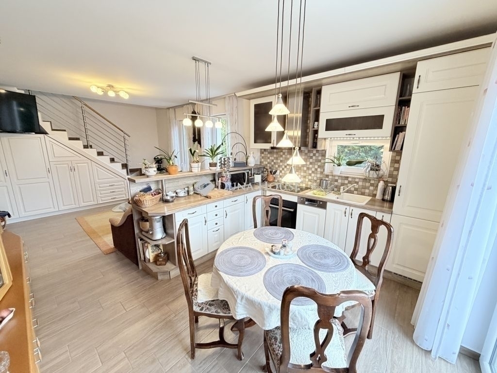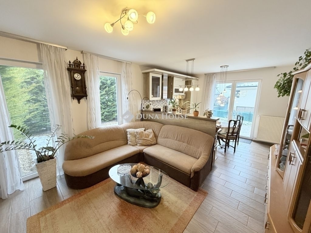 Az ingatlan dél-nyugati tájolásának és hatalmas üvegfelületeinek köszönhetően egész nap világos, a nappaliban padlófűtés gondoskodik komfortról.