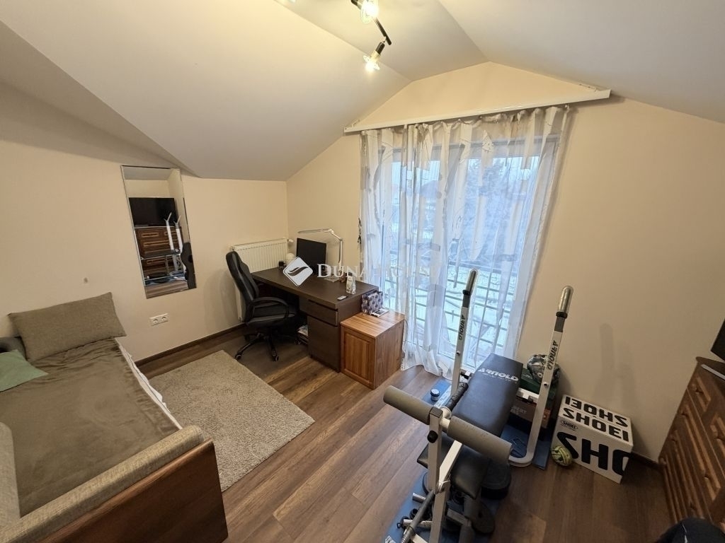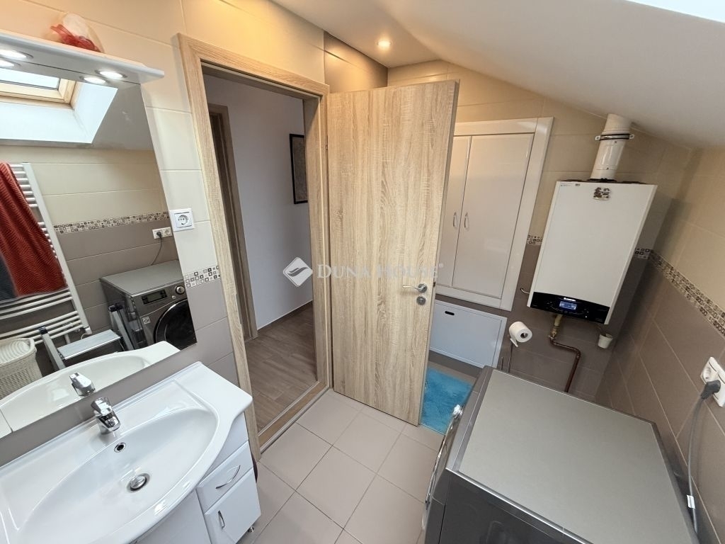Az alsó szinten található egy hálószoba is, zuhanyzós fürdőszoba WC-vel, háztartási helyiség, és egy kamra is. Az emeleten található 3 hálószoba, egy kádas fürdőszoba, a kényelemérzetet pedig a közlekedőben elhelyezett a klíma növeli.