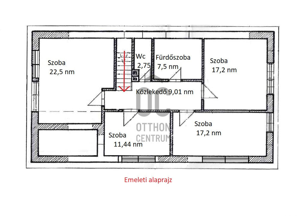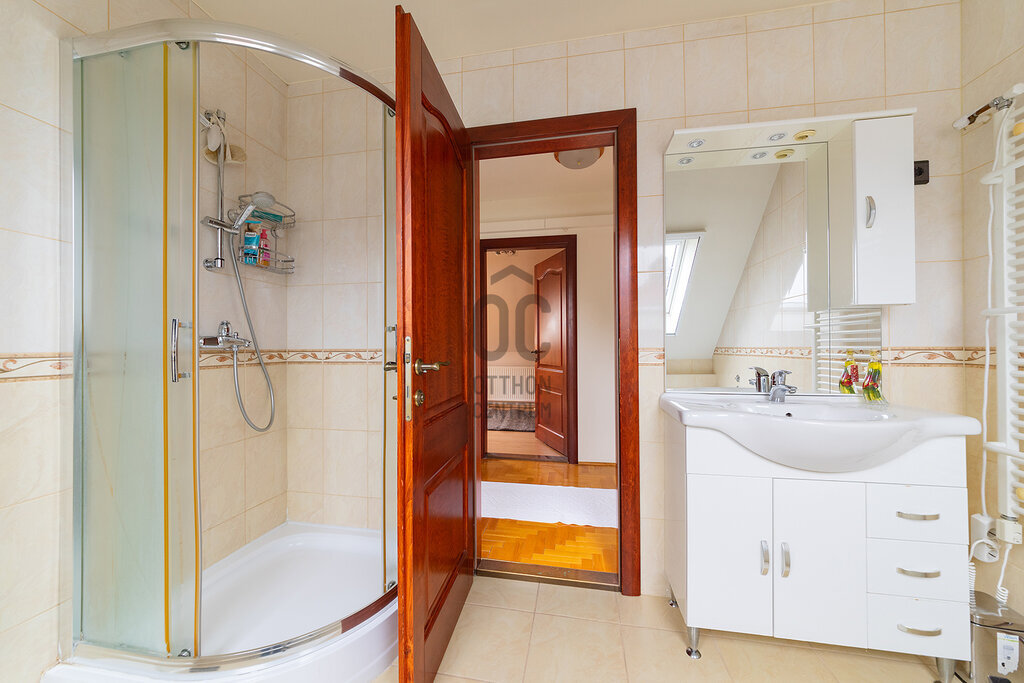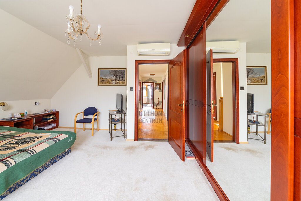 Az emeletre kényelmes lépcső vezet, ahol 4 szoba található, továbbá egy kádas fürdőszoba és egy külön mellékhelyiség is helyet kapott.