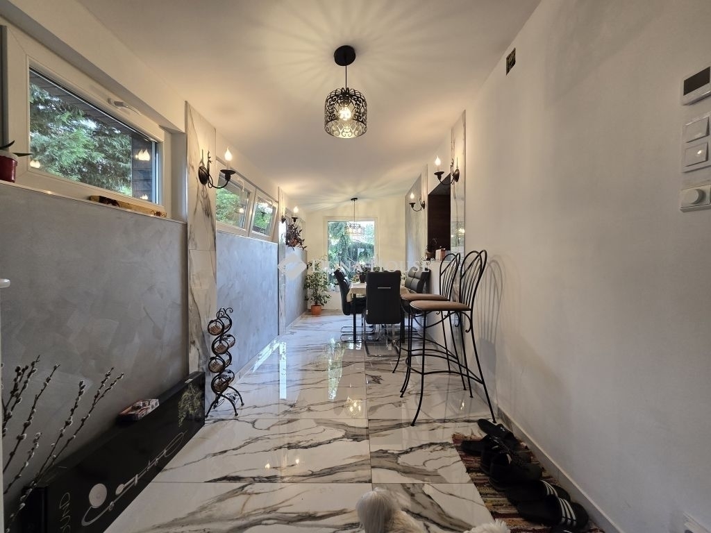 Kétgenerációs! Felújított! Hatalmas terasszal!Eladó a 18. kerület méltán kedvelt részén, Újpéteritelepen, csendes, nyugodt környezetben, egy kétgenerációs ( 90nm + 40nm ) körbejárható ingatlanpár, 657 nm-es telken, hatalmas 40nm-es fedett terasszal, garázzsal, fedett beállóval, pincével!A nagyobbik ház felújított, a burkolatok, a víz- és villanyhálózat teljes körű cseréje megtörtént, fa és műanyag thermo nyílászárók kerültek beszerelésre.A tágas fürdő zuhanyzós, és kádas is.A felújításkor különös figyelmet fordítottak az energiatakarékosságra: a külső falak 10 cm-es, a tetőtér pedig 20 cm-es kőzetgyapot szigetelést kapott, ami jelentősen hozzájárul a fűtésköltség csökkentéséhez. A fűtésről néhány éves gázcirkó és és ez étkezőben elhelyezett elektromos padlófűtés gondoskodik, a nyári hőség elviseléséről pedig klímaberendezés. A vételár részét képezi a jakuzzi, az ülőgarnitúra és a gépesített konyha is.A kisebb ház átlagos állapotban van, ideális lehet idősebb családtagoknak, vagy akár kiadásra is.Az udvar parkosított, térkövezett, ami kiváló lehetőséget biztosít a szabadidős tevékenységekre, a gyerekek biztonságos játszására vagy családi és baráti összejövetelekre egyaránt. Gépkocsiját garázsban tudhatja biztonságban, de az udvaron fedett beálló is található.Tehát, ha egy multifunkcionális, többgenerációs otthont keres zöld környezetben, akkor ne hagyja ki ezt a lehetőséget!Megtekintésért kérem hívjon, akár hétvégén is!