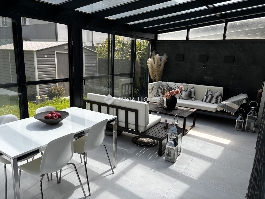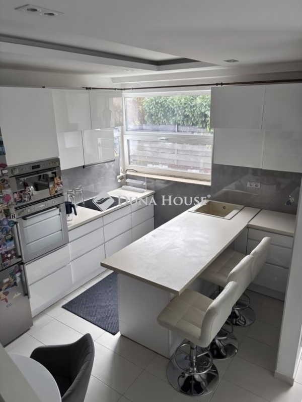 KURIÓZUM INGATLAN SZENT IMRE-KERTVÁROS SZÍVÉBEN!!!!Itt lakni egy élet érzés,kiváló lokáció,pazar műszaki tartalom....Szent Imre-kertváros: a kerület egyik méltán közkedvelt,csendes részén,pár perc sétára a pezsgéstől de nagyon közel a Péterhalmi erdőhöz,bevásárlási lehetőségekhez,játszótérhez.Az ingatlan 2015-ben készült,magas műszaki tartalommal és minőségi kivitelezéssel,amelynek a lakóterülete két szinten 94 nm,amelyhez tartozik egy 15 nm-es garázs és az udvaron,a viacoloros burkolattal ellátott részen két autó részére udvari beálló,illetve a ház udvari frontján található egy 27 nm-es terasz,amelyet a tulajdonosok egy zárható és fűthető télikertté varázsoltak.A ház alsó szintjén került kialakításra az előszobából belépve a kézmosós toalett és teljesen modern,egy légterű 35 nm-es nappali+amerikai konyha.A felső szinten három hálószoba,gardrób szoba és egy fürdőszoba található.De a ház legnagyobb extrái közé tartozik,hogy a ház tetején került kialakításra egy 46 nm-es privát tetőterasz!!!!!!És akkor az egyéb műszaki paraméterek,amelyek növelik az ingatlan értékét:-5 kw-os napelem szaldóval-elektromos garázs és kapu nyitás -elektromos autó töltő-okos vezérlésMind a környék,mind az ingatlan nem a megszokott sablonok közé tartozik,keressen bizalommal további információkért.