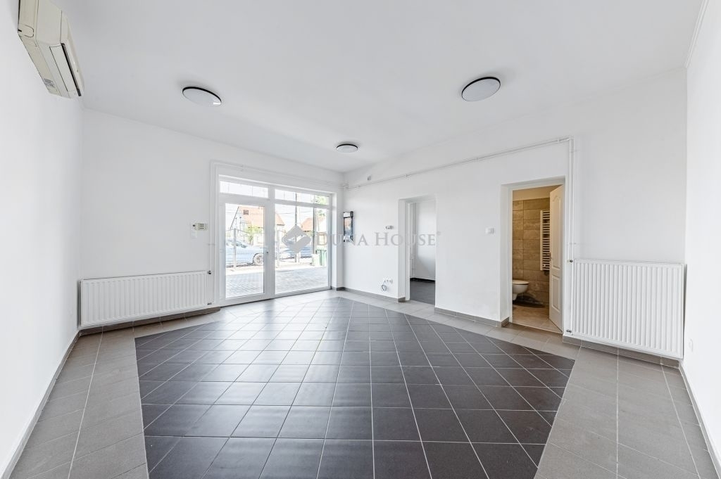 Az utcafronti üzletrész helyiségei: eladótér (25 nm), vendégmosdó (4 nm), iroda (5,8 nm), mosdó (2,2 nm). Fűtéséről kondenzációs gázkazán (radiátor) és hűtő-fűtő klíma, míg melegvíz ellátásáról villanybojler gondoskodik. Saját villanyórával rendelkezik, igény esetén a többi közmű is elkülöníthető.
