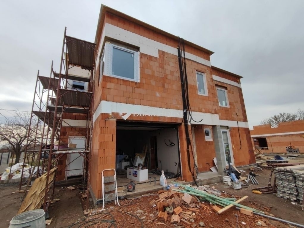 Új építésű, amerikai konyhás nappali + 4 szobás, napelemes, dupla erkélyes ikerházfél GanzkertvárosbanEladó Budapest 18.kerületében, Ganzkertváros csendes, új építésű részén egy nettó 154 nm - es, amerikai konyhás nappali + 4 szobás ikerházfél 20 nm-es terasszal 400 nm - es telken.Minden állami támogatás igényelhető!A lakás földszinti helyiségei: amerikai konyhás nappali, kamra, előszoba, mosdó, garázs, tároló, terasz.A lakás nettó földszinti alapterület: 71 nm.A lakás emeleti helyiségei: 4 db szoba, közlekedő, WC, fürdő.A lakás nettó emeleti alapterület: 70 nmMűszaki leírás:- 30 - as phorotherm tégla- 10 cm szigetelés- hideg- és melegburkolatok 4.000 - 4.500 Ft / nm-ig- beton födém- műanyag nyílászárók- műanyag bejárati ajtó, garázskapu- 6 kw-os napelem hibrid inverterrel- infra film fűtés- nappaliban és a 4 hálószobában hűtő-fűtő klíma- H-tarifaVárható átadás 2025. 2. negyedév!Teljes műszaki leírás, méretarányos tervrajz, teljes dokumentáció irodánkban megtekinthető.A Duna House teljes kínálatával kapcsolatban forduljon hozzám bizalommal. Hitel ügyintézés garantáltan a legjobb feltételekkel és a leggyorsabban. Eladás és vétel teljes körű ügyintézése, ingyenes tanácsadás, értékbecslés, megbízható ügyvédi háttér biztosítása.IGÉNY ESETÉN - ÉLŐ SKYPEVIDEO LAKÁSBEMUTATÁS, TELJES KÖRŰ ONLINE ÜGYINTÉZÉS! Hibás hirdetés bejelentése