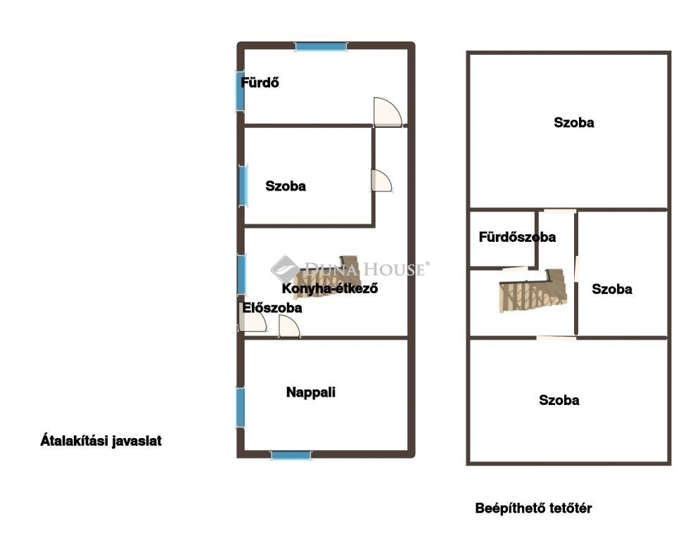 A tetőtér igény szerint beépíthető, így a ház további bővítési potenciált rejt, további 3-4 szoba kialakítható.