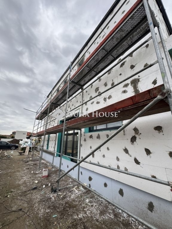 18.kerület legkedveltebb részén AlmáskertbenAlmáskertben modern környezetben eladó új építésű ikerházfél.A kivitelező sok éves múlttal és rengeteg elégedett ügyféllel rendelkezik, referenciák akár itt a lakóparkban is megtekinthetőek.137,37 négyzetméter hasznos lakótérrel rendelkezik, mely egy 375 négyzetméteres telken fekszik. Nappali+4hálószobával rendelkezik, a szobák minimum 12 négyzetméteresek. A földszinten a nappaliból egy 17,43 négyzetméteres teraszon keresztül juthatunk ki a saját privát kertünkbe.Autóval garázsban és az udvaron is lehet parkolni.Műszaki adatok:-30-as Prototherm tégla falazat-15 cm-es homlokzati szigetelés-29 cm-es szigetelés az aljzat felől-35 cm-es szigetelés a födém felől-3 rétegű műanyag nyílászárók, kívül antracit, belül fehér színnel-a tető szerkezete fafödém cserépfedéssel-elektromos garázskapu antracit színnel-elektromos kertikapu-Hőszivattyús fűtés, padlófűtéssel-1db hűtő-fűtő klíma-2 fürdőszoba-mosókonyha-térkövezett autóbeálló-épített kerítés-napelem, riasztó, kamera kiállásokBurkolatok/beltéri ajtók/szaniterek még választhatóak.Hideg/meleg burkolatok 5.000 Ft/m² értékhatárig van lehetőség választani, a szaniterekre, csaptelepekre és belső nyílászárókra szintén meghatározott keretösszegek állnak rendelkezésre: beltéri ajtó kilinccsel 80.000 Ft/db, kád tartozékaival 80.000 Ft-ig, csaptelep 20.000 Ft/db, mosdó 20.000 Ft/db értékig az ár részét képezik.A lakópark teljesen új modern környezet, összetartó közösség jellemzi. Közlekedést tekintve autóval a Gyorsforgalmi út, Üllői út, Gyömrői út az M0-ás, M5-ös és a 4-es út mind-mind maximum 5 perc alatt megközelíthető.Tömegközlekedés 3 perc sétára, ahonnan a buszok Kőbánya Kispest vasútállomásig, illetve Határ úti metrómegálló, Ferihegyi vasútállomás is megközelíthető. 10 perc busz távolságra Ferihegyi vasútállomás, melyről a Nyugati pályaudvarig közlekedhetünk. Séta távolságra: Gyógyszertár, Spar, Iskola, Óvoda, PostaHa ön is itt szeretne élni keressen bizalommal a hét bármely napján!Átadás 2026. I. negyedév. Hibás hirdetés bejelentése