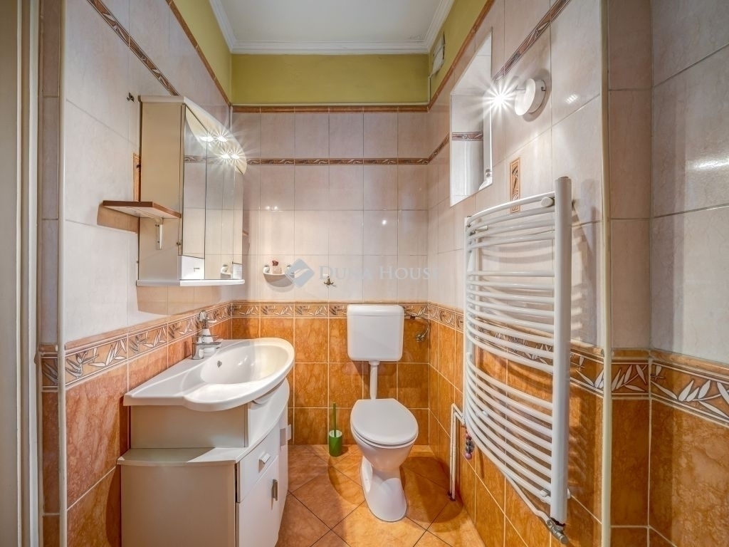 Budapest 18. kerületében a Béke tér közelében 1 szintes, 64nm-es, pincés, házrész eladó. Telek:256 nm-es telekrész tartozik ehhez a házrészhez. Felszíni autóbeálló, kerti csap és sütögető is található rajta.Parkolás:A környező utcákban és felszíni autóbeállóban lehet parkolni.Finanszírozás:Az ingatlan készpénzzel és banki támogatással is megvásárolható.Épület:Belépés után az előszobában találjuk magunkat. Jobbra egy kis szoba, balra a fürdőszoba található. Az előszobából továbbhaladva az amerikai konyhás nappaliba érkezünk, melyből jobbra egy nagy található. A konyhával szemben a lejárón keresztül a pincébe jutunk.Műszaki:Az ingatlan 1960-ben épült.A pince 22nm.2016-ben belső festést kapott, műanyag, redőnyös ablakok lettek beszerelve, illetve a radiátorokat cserélték ki.2023-ban a tető javítása zajlott.A ház fűtéséről gázcirkó gondoskodikAz utcáról elektromos kapun keresztül lehet beállni a kocsibeállóra.A nyári melegben klíma gondoskodik az ideális hőmérsékletről.Környék:A környéken kiváló a közlekedés, közelben óvodák, iskolák, bevásárlási lehetőségek, patika is elérhető.