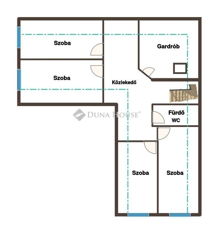 A tetőtérben 4 szoba, egy gardrób, valamint a zuhanyzóval és WC-vel szerelt fürdőszoba került kialakításra. A szint bruttó alapterülete 85 m², de a belmagasságból több helyen elvesz a tető síkja.