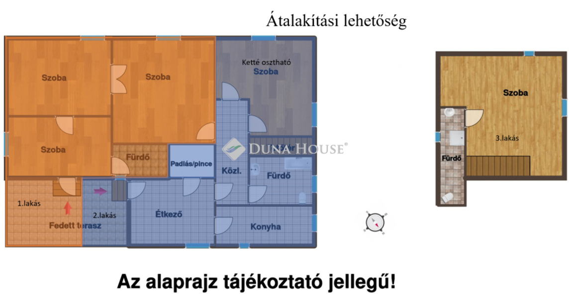 Átalakítás után akár 3 lakás is kialakítható: