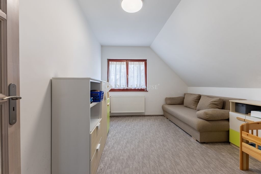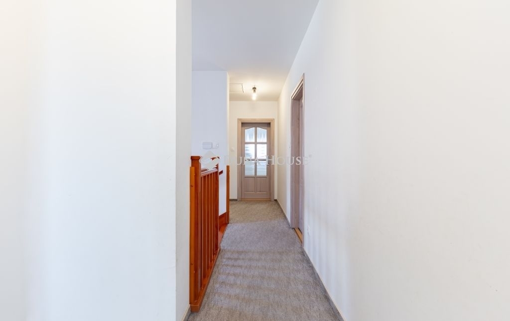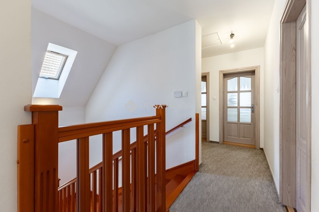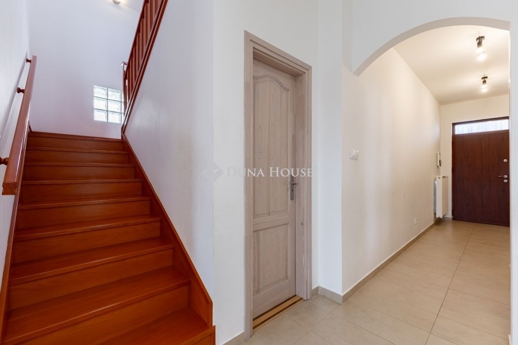 A biztonságról mozgás érzékelőkkel és kamera rendszerrel szerelt riasztó berendezés felel. A ház bejárati ajtaja több ponton záródó, biztonsági ajtó. A homlokzati nyílászárók hőszigetelő üvegezésű, három rétegű nyílászárók, redőnnyel és részben szúnyoghálóval szerelve. Az ablakok csakúgy, mint a belső térelválasztó ajtók, egységes minőségi Borovi fenyőből készültek. Az emelet impozáns bükkfával borított lépcsőkön keresztül érhető el. A nappali aljzata tölgyfa parkettával fedett, az emeleten a szobák padlószőnyeggel, minden más helyiség mázas kerámia lappal burkolt.