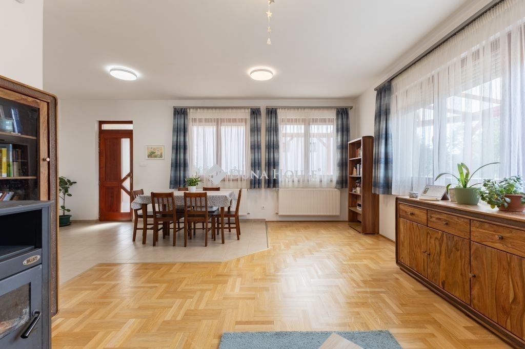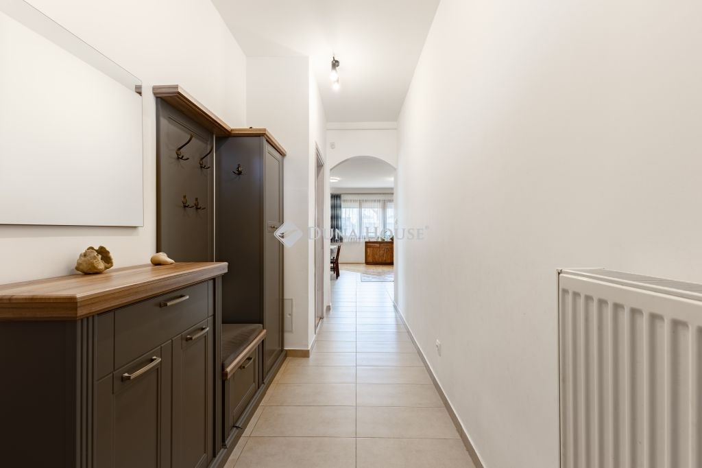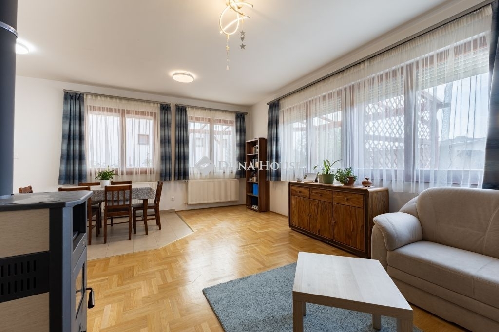 A gáz átalány költsége egész évben 9.400 Ft/hó Az egyéb szolgáltatók felé fizetendő díj fogyasztás alapján kerül elszámolásra és egyedileg mérhető! A földszinten egy, az emeleten kettő darab hűtő-fűtő klíma berendezés gondoskodik a nyári melegben a megfelelő hőmérsékletről.Az egyedileg méretre készült konyhabútor beépített gépészettel a vételár részét képezi. A nappaliból érhető el a hangulatos 31nm-es fedett terasz, mely tökéletes helyszíne lehet a családi rendezvényeknek.