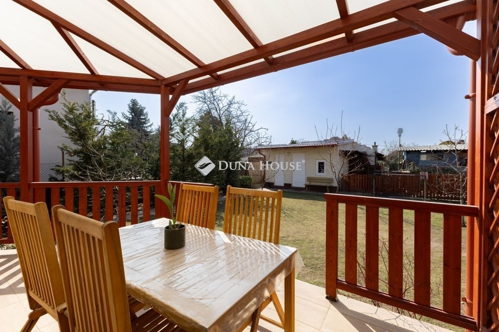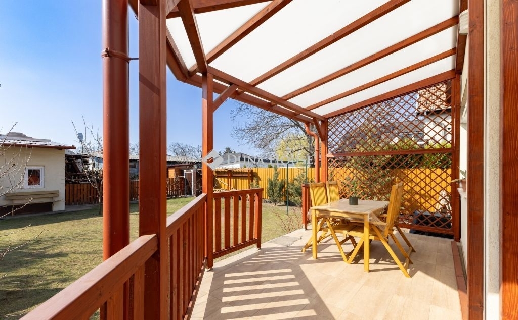 A kert hátsó része teljesen intim, az utcáról és a szomszédos telkekről nem belátható, gondozott, babérmeggy, és több gyümölcsfa és egy 23 nm-es kerti tároló is megtalálható.