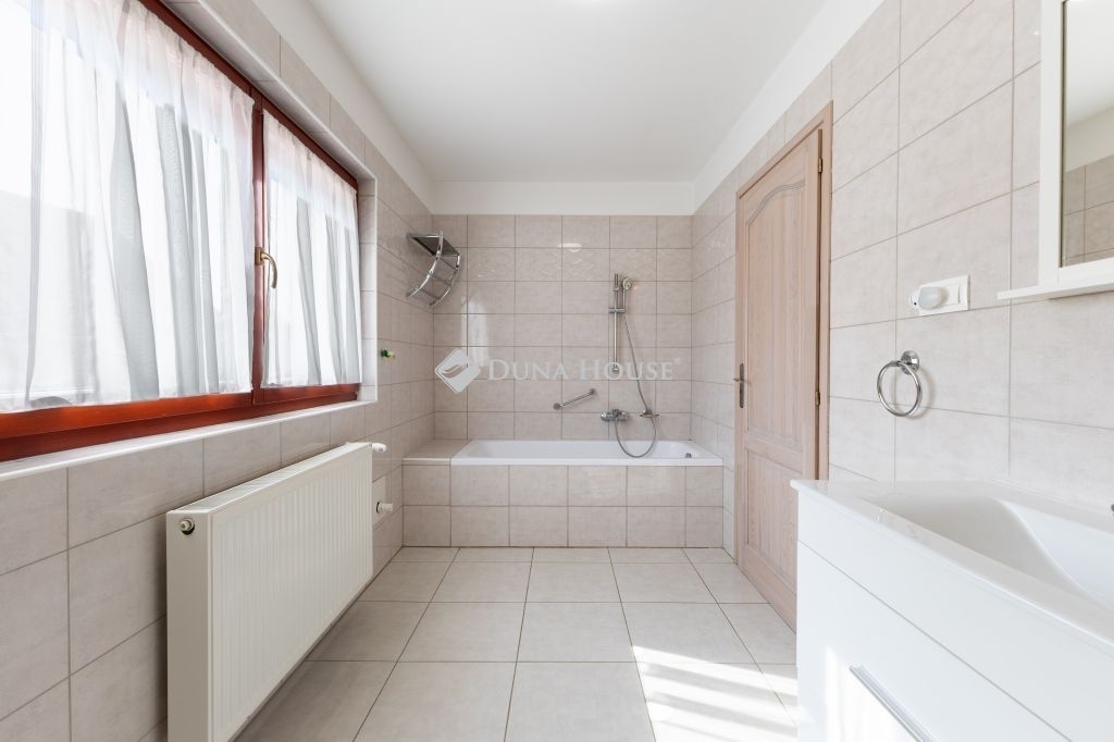 A fűtésről és a használati meleg-víz ellátásról, a garázsban található kombi cirkó gondoskodik, a hőleadók lapradiátorok, a földszinten a fürdőben törölköző szárítós radiátor és páraelszívó növeli a komfortérzetet. Az emeleti fürdőszobában padló fűtés is üzemel.Alternatív fűtési lehetőséget kínál a nappaliban található kandalló.
