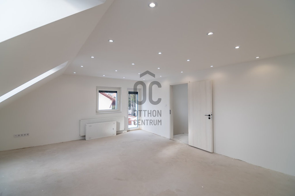 Az ingatlan 4 szobával, tágas nappalival, ablakos szuterén szinttel és két autó számára is kényelmes garázzsal rendelkezik. Az utca átmenő forgalomtól mentes, így a környék az almáskerti építkezések ellenére is nyugodt, kiegyensúlyozott lakókörnyezetet biztosít.
