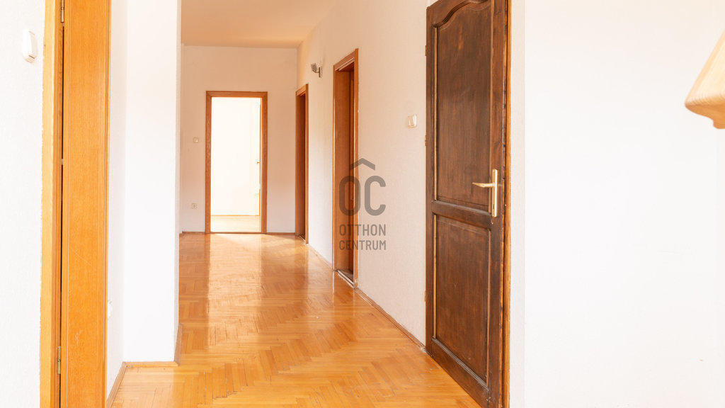A fedett garázs és az elektromos kapu a mindennapi kényelmet szolgálja. Az ingatlan egyik különleges értéke a gyönyörű, eredeti futtatott parketta, amely elegáns, meleg hangulatot biztosít a lakótérben.