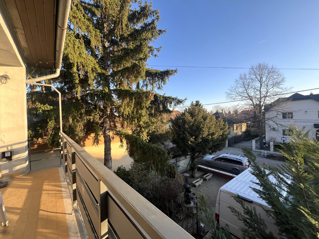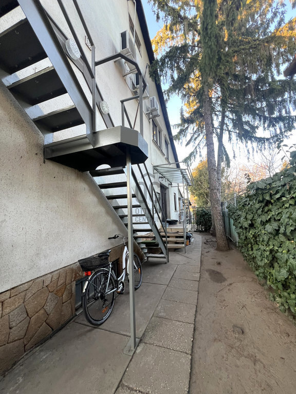 A ház utcai frontján két szinten nagy erkély található felújított korláttal, valamint egy emeleti külső lépcső is kialakításra került.