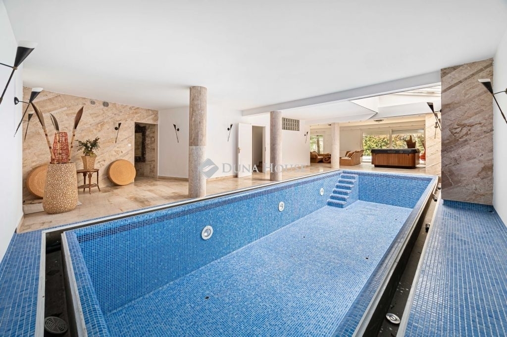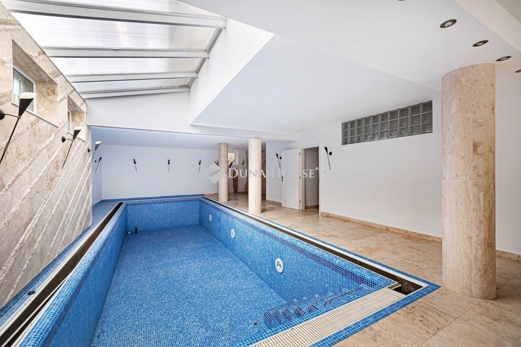 TERMÉSZETKÖZELI AMERIKAI KONYHÁS NAPPALI+7 HÁLÓS, 5 FÜRDŐSZOBÁS LUXUS CSALÁDI HÁZ BELSŐ MEDENCÉVEL ELADÓ!