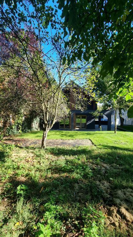 -2024 őszén átadott, új építésű ikerház belső fele, 600 nm-es, intim, ősfás kerttel