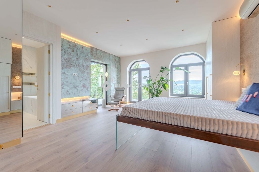 Az ingatlan 180 fokos, lenyűgöző panorámával és egy 700 m²-es, parkosított saját kerttel rendelkezik – ideális választás azoknak, akik szeretnének elszakadni a város zajától, miközben minden fontos szolgáltatás könnyen elérhető marad.