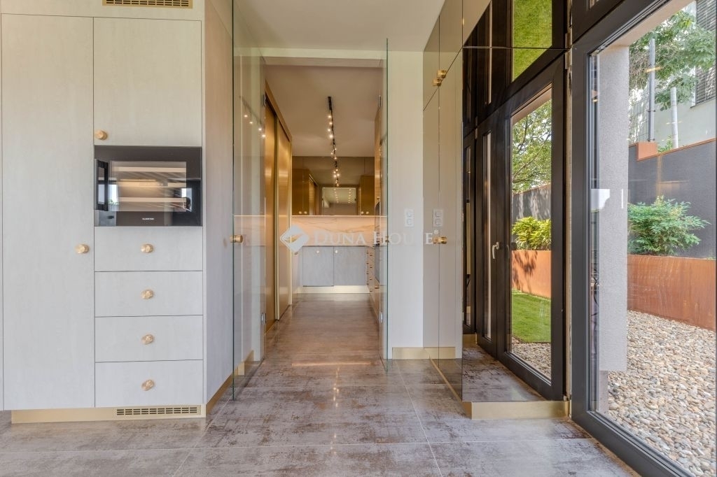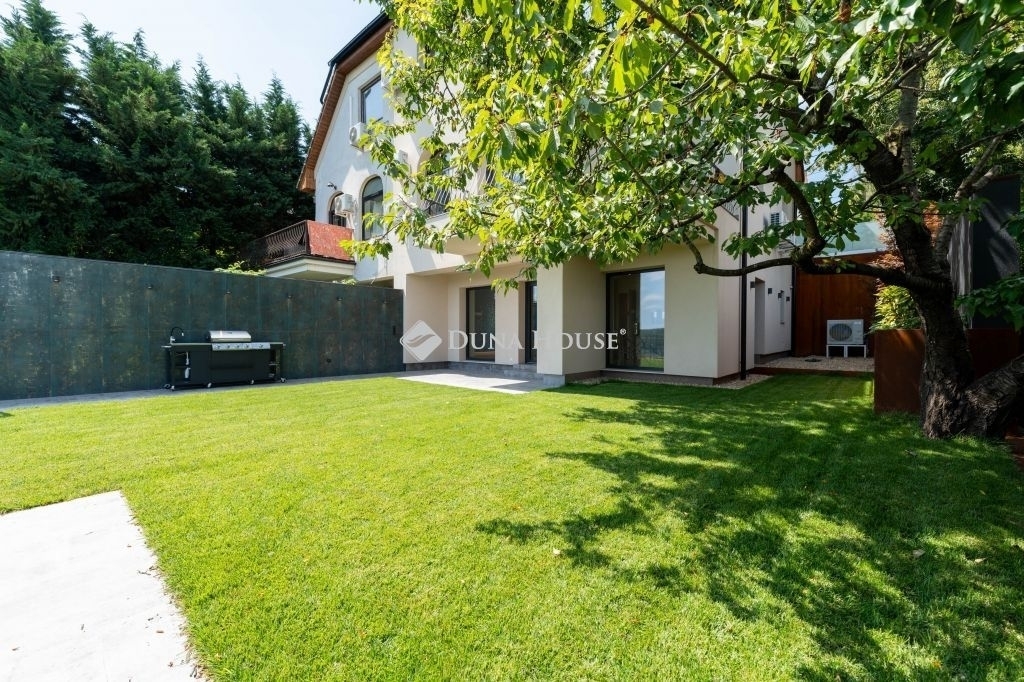 A gondosan megtervezett, automata öntözőrendszerrel ellátott kert, valamint a felsőkategóriás anyaghasználat elegáns, mégis igazán otthonos hangulatot teremt.
