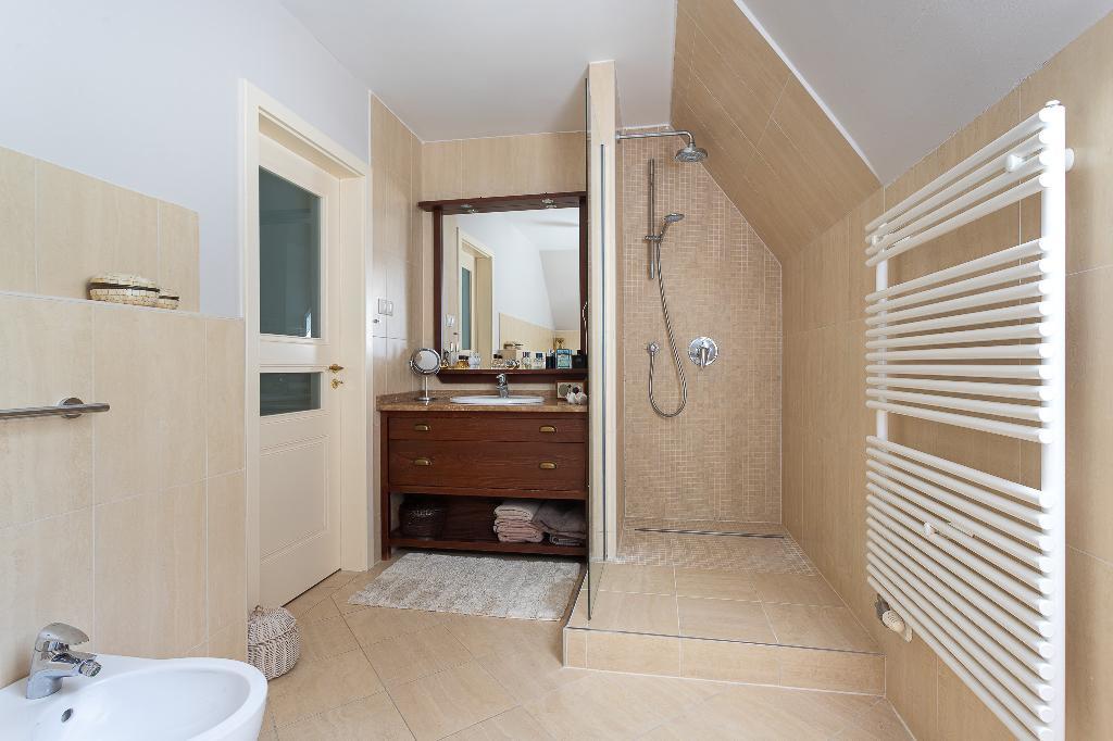 Features: condensing gas boiler, fireplace, Daikin heating/cooling air conditioning, security doors, alarm system, electric shutters with mosquito nets, automatic gate and garage door. In addition to the garage, both covered and open parking spaces are available. The property is externally insulated, and the landscaped garden is equipped with an automatic irrigation system.