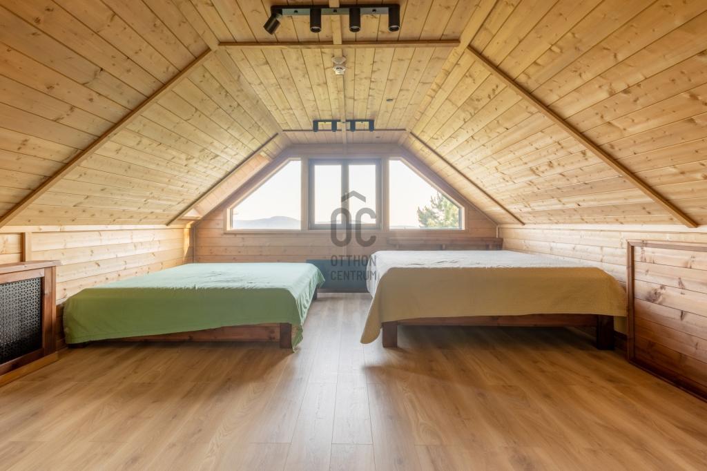 a bruttó 35, nettó 18 m2-es tetőtérben pedig egy nagy szoba van, amiből akár két hálószoba is kialakítható.